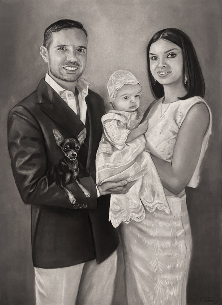 En nuestros retratos al carboncillo de familias, nos esforzamos por capturar el vínculo especial que existe entre los miembros de la familia. A través de nuestra técnica realista y detallada, logramos plasmar no solo las características físicas de cada individuo, sino también sus emociones y personalidades únicas. El resultado final es una obra de arte que evoca amor, calidez y felicidad, que puede ser un tesoro inestimable para toda la familia.