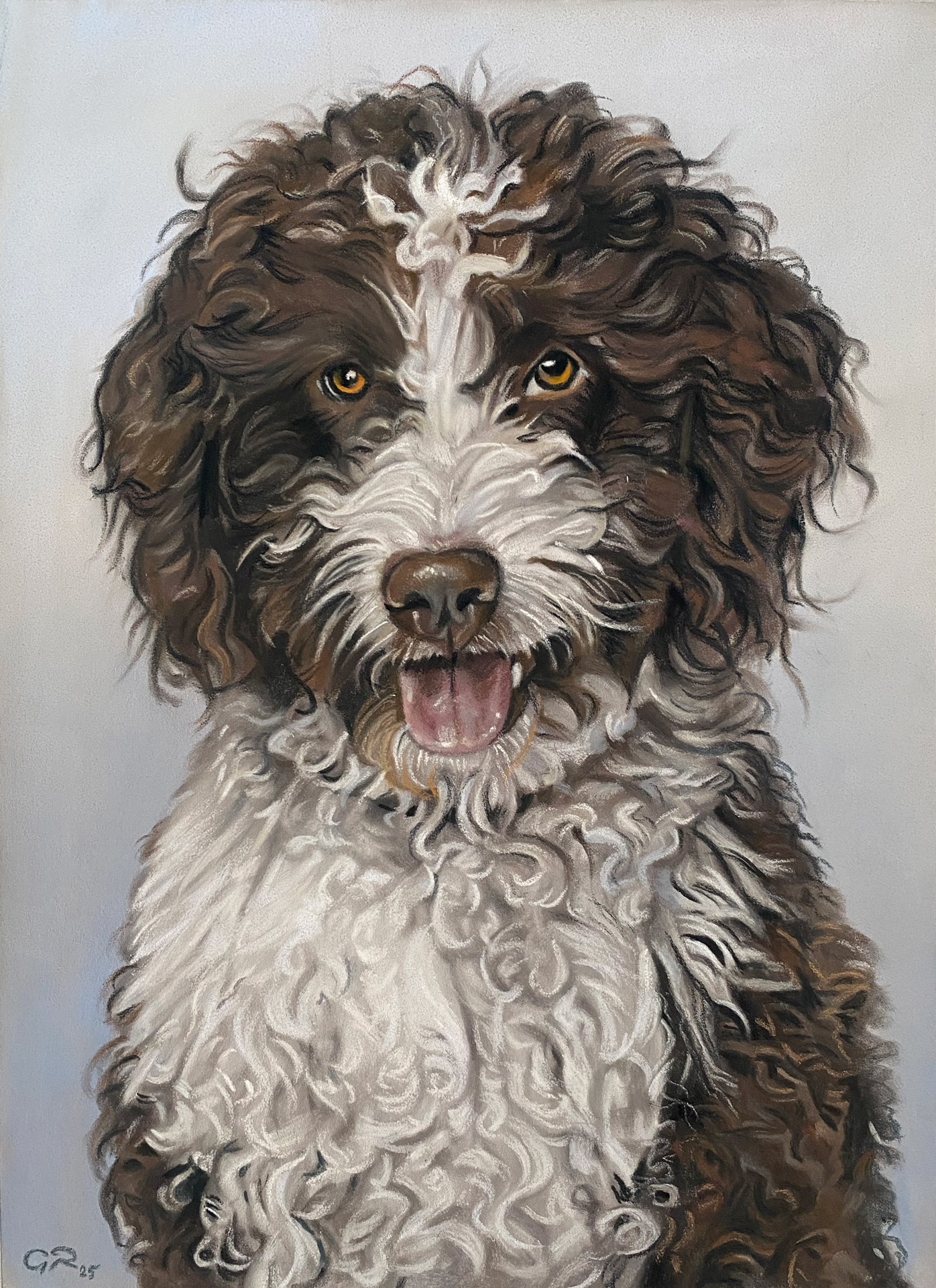 Uno de los encargos más delicados y emotivos es el de los retratos de perros fallecidos. Cuando un perro ya no está, el recuerdo se vuelve aún más valioso. Un retrato puede convertirse en una forma de mantener viva su presencia y honrar su memoria de manera artística y respetuosa.