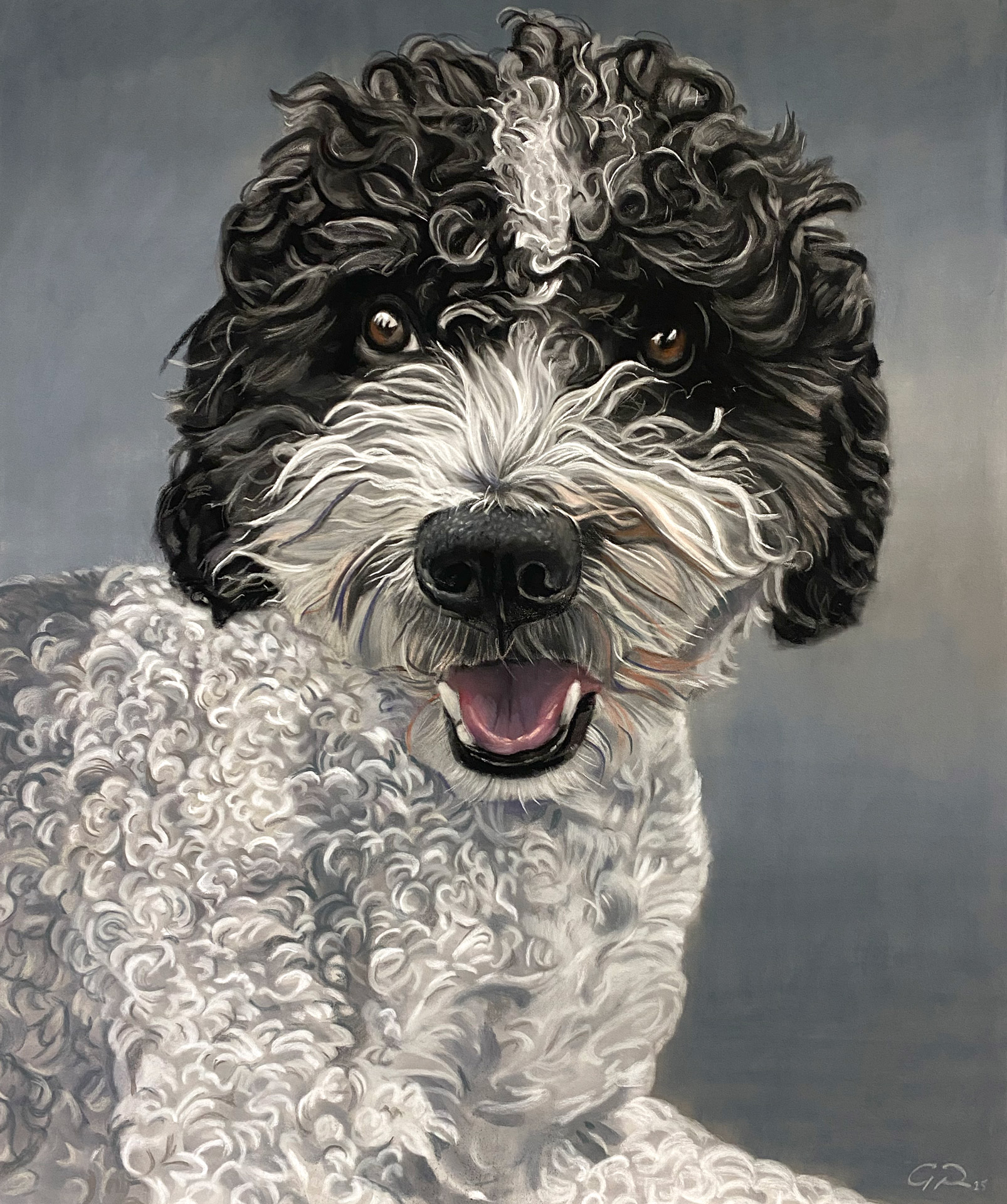 Realizamos retratos de mascotas personalizados en estas 3 técnicas. Carboncillo para blanco y negro, y óleo y pastel para color.