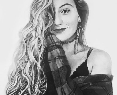 Retrato de mujer con pelo liso. Dibujo al carboncillo
