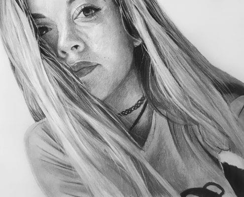 Retrato al carboncillo de una preciosa chica